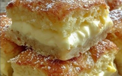 🍰 La crema di formaggio setosa incontra la ricca crema pasticcera in queste barrette lussuosamente lisce con una crosta burrosa…